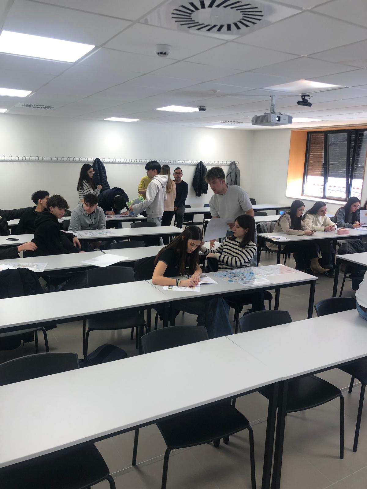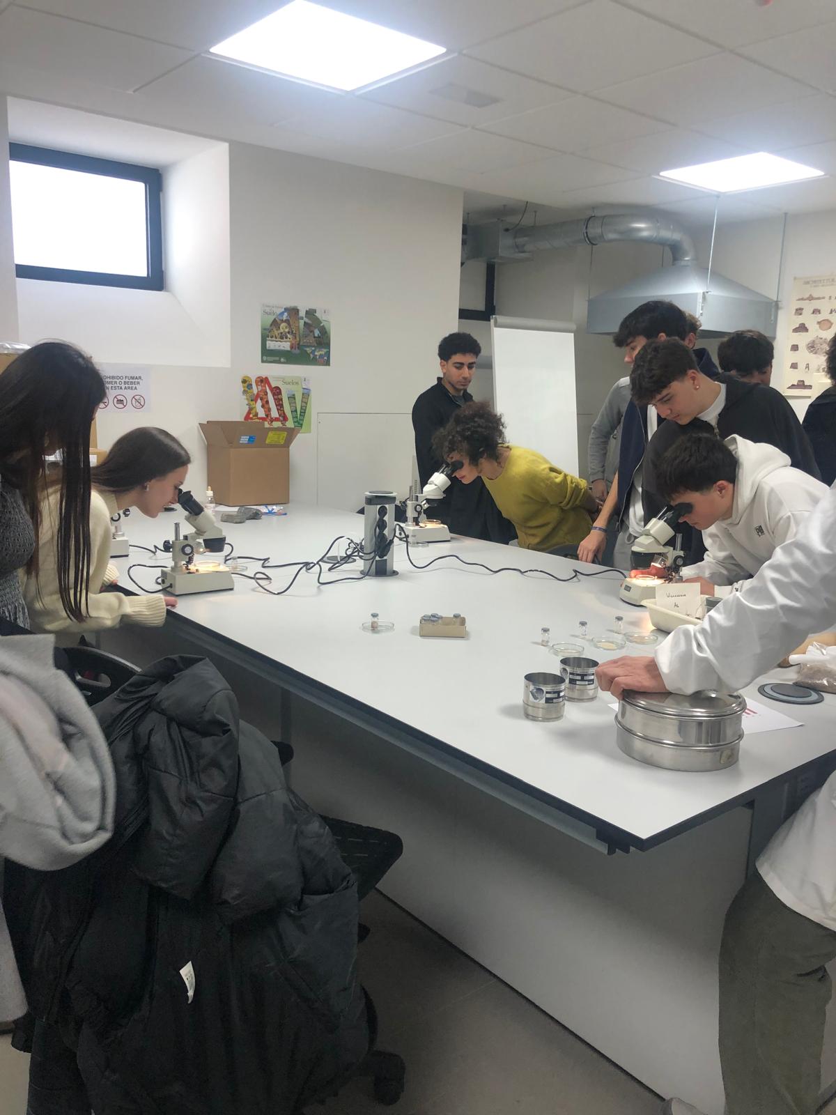 Los estudiantes del IES Valdespartera recorrieron las instalaciones y espacios del nuevo edificio de la Facultad de Filosofía y Letras. En los laboratorios de l Instituto de Ciencias Ambientales (IUCA) y en el de prácticas de la Facultad, conocieron las posibilidades técnicas de diversos análisis habituales en Geografía. En la segunda parte de la visita realizaron actividades y talleres, dirigidos por los investigadores pre-doctorales del Departamento Sergio Larraz e Isabel Suñén. Al final de la mañana se les presentaron a los estudiantes algunos aspectos del nuevo título de Grado en Geografía, Territorio y Medio Ambiente y se les invitó a participar en próximas actividades del Departamento.
